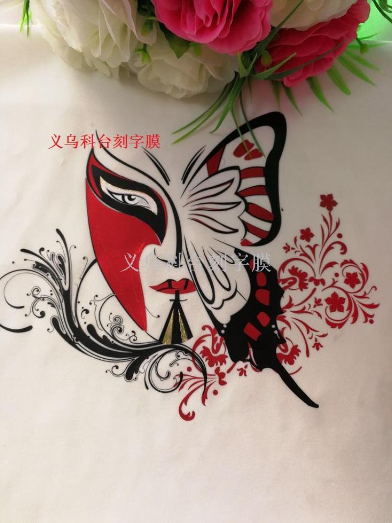1:闪光金葱镭射刻字膜,热转印膜,品种繁多,色彩绚丽,清晰柔和。