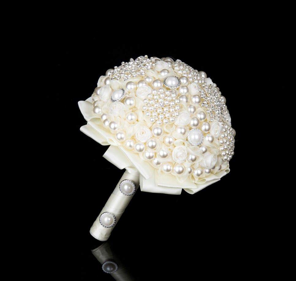 珍珠蕾丝花边新娘手捧花影楼仿真花束欧式森系新娘奢华手捧花 English | 投诉