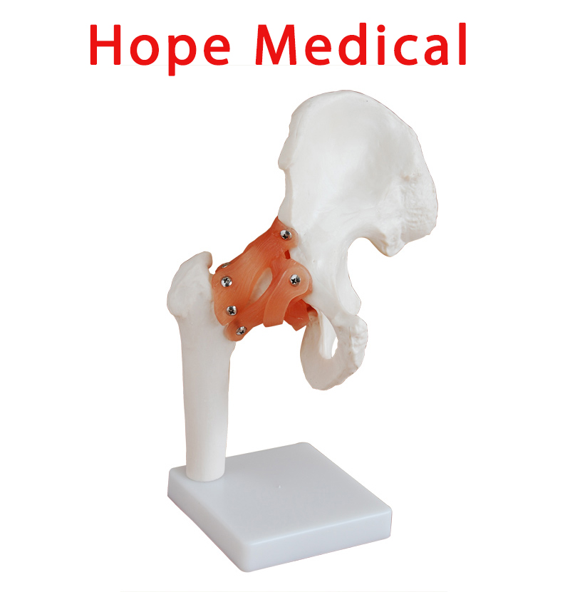 这款模型可展示髋关节前倾、后倾、外展和向内/向外旋转。自然大,有底座。尺寸:21x19x28CM。