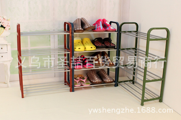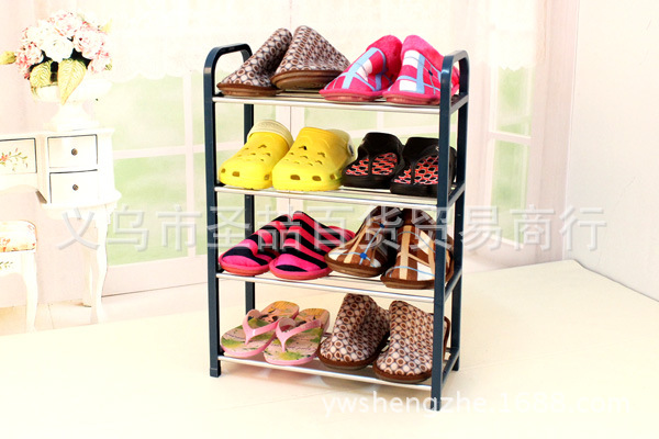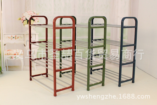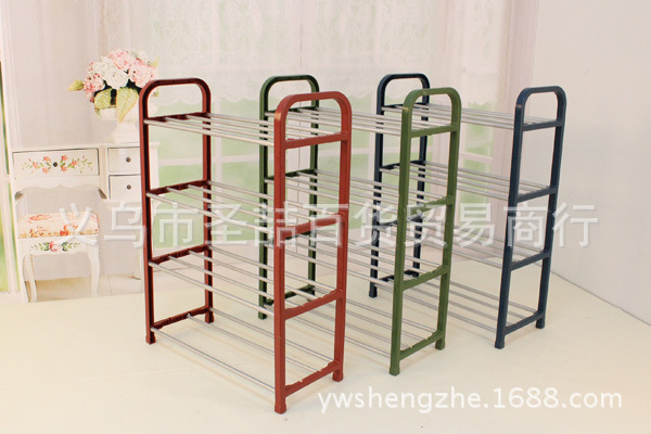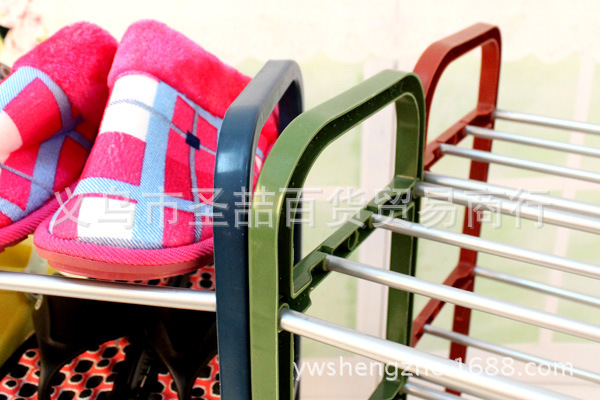 10元店创意收纳鞋架 塑料不锈钢管鞋架多层展示鞋架 置地鞋架批发