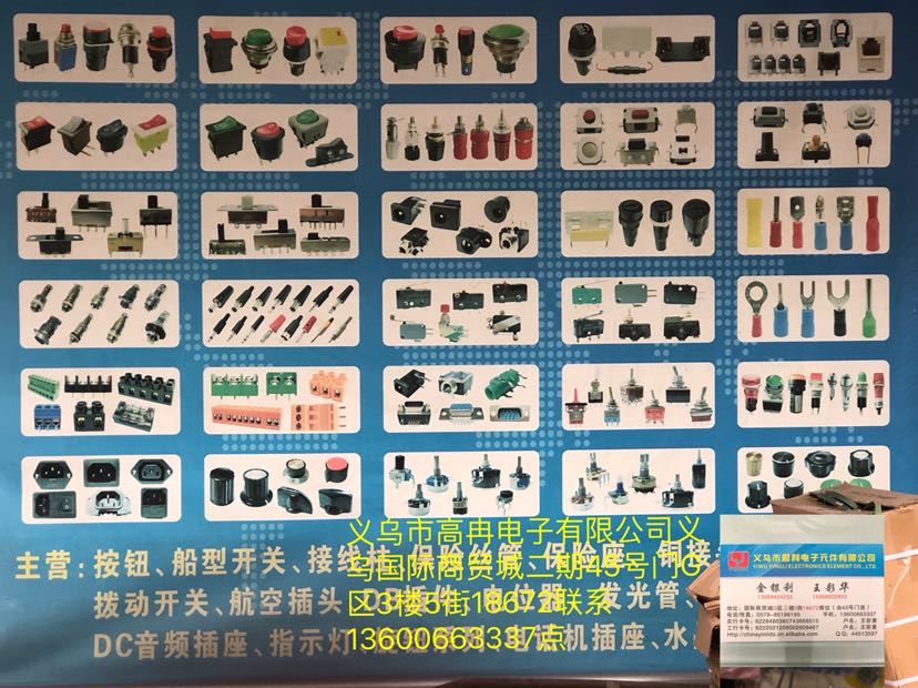 • 专营:电子元件配套,船型开关 轻触开关 拨动开关 自锁开关 DC插座 叶片开关 手电筒开关 正负极片 电池扣 二三极管 电阻 电容 钥匙圈 登山扣 焊接,欢迎新老客户惠顾!