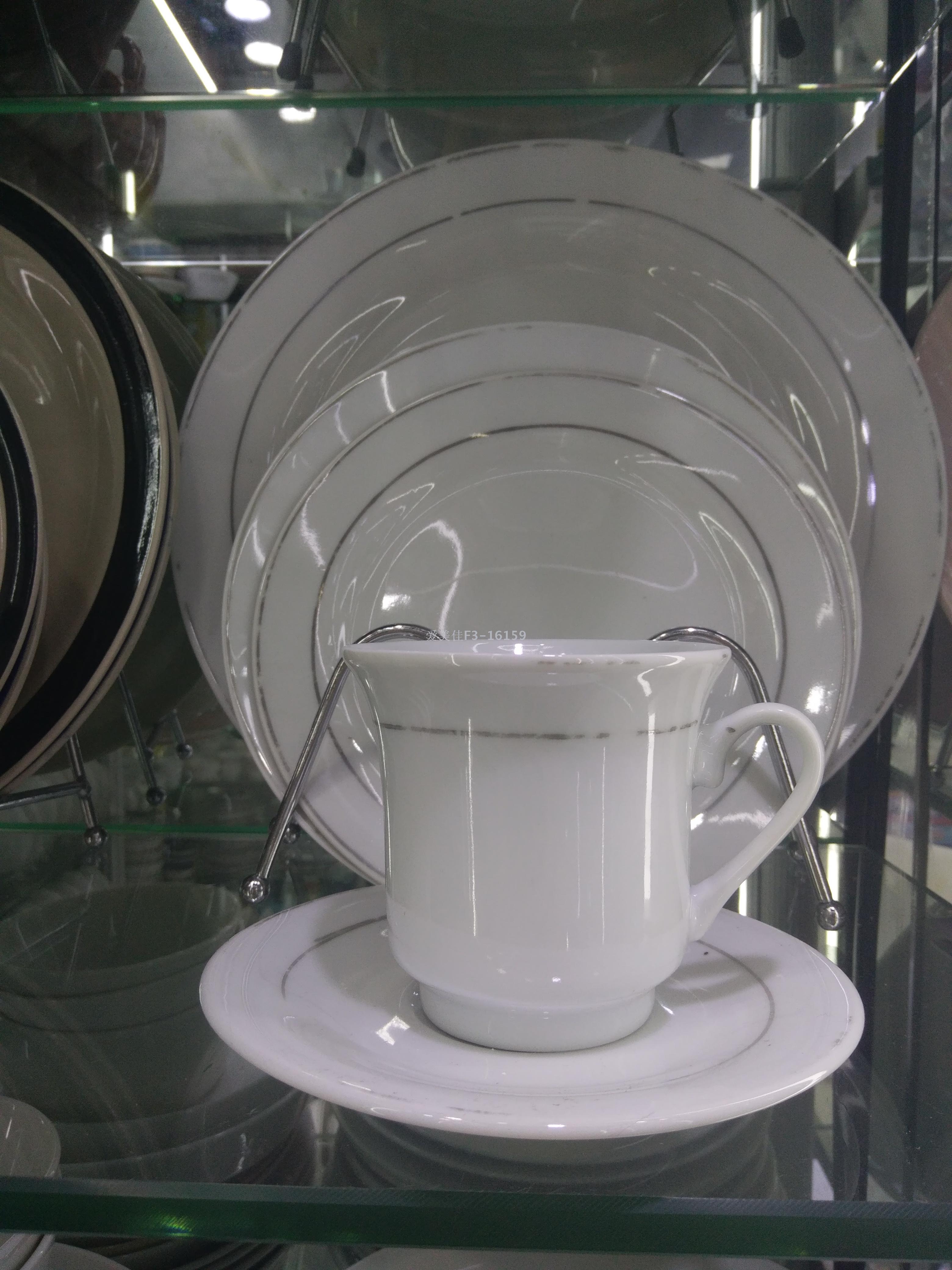 • 广东爱美佳陶瓷主营各种10.5寸白盘 陶瓷杯 陶瓷碗 16头现货处理 47头 51头 68头 72头大配套餐具 现货库存价格优惠 可定制客户LOGO欢迎广大客户前来洽谈:15372962593