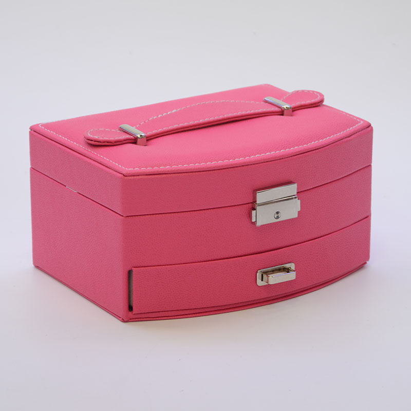 本店所有产品规格均为手工测量!会有一公分的误差哦!玫红色手提珠宝收纳盒,全自动多功能首饰收纳盒!