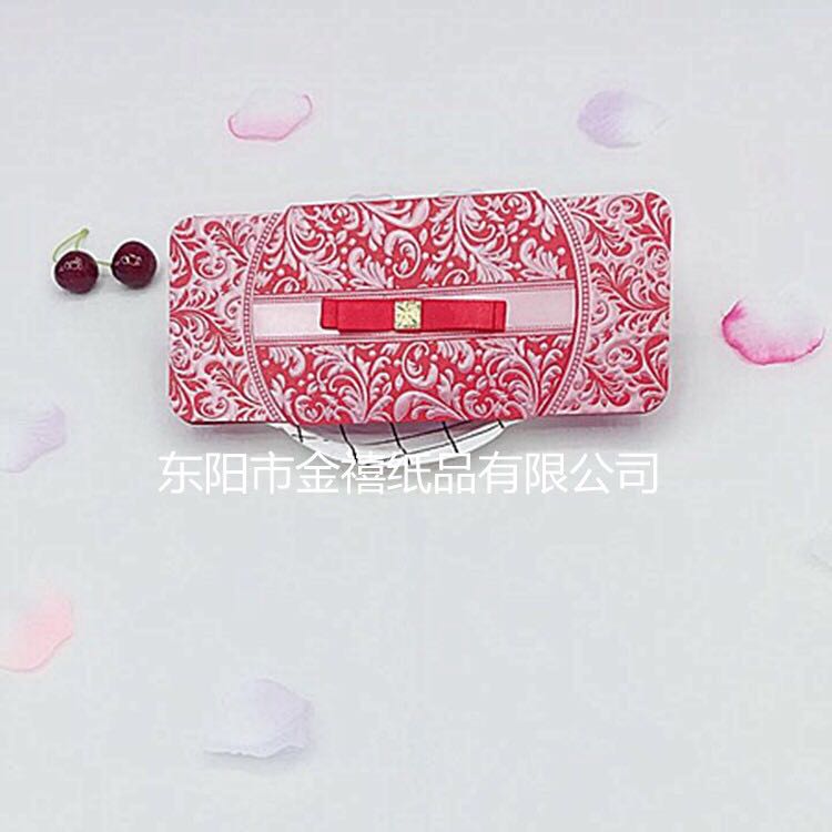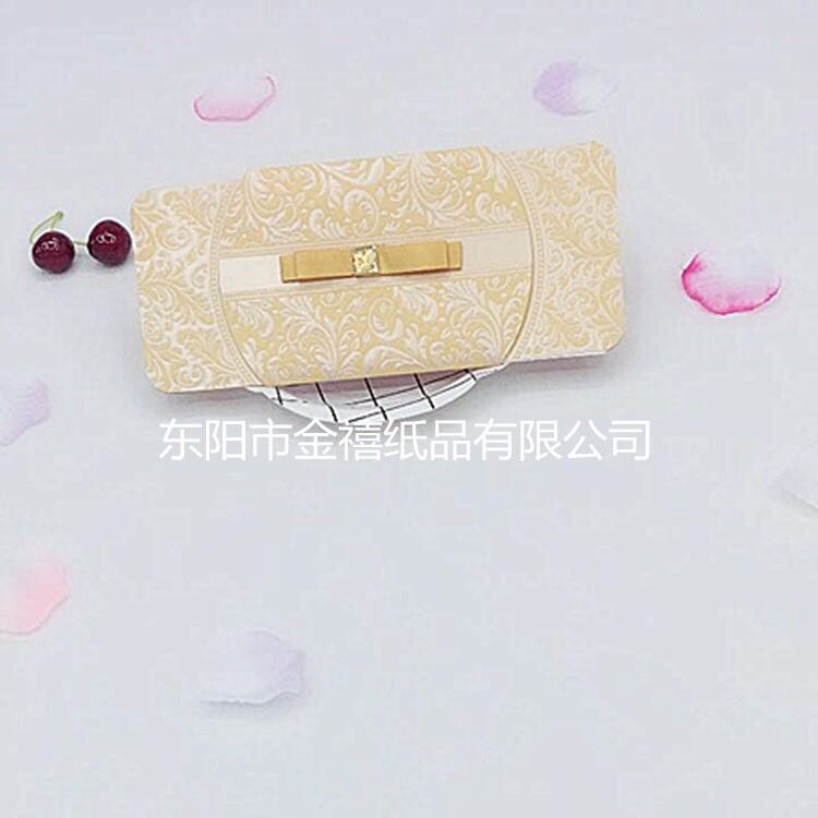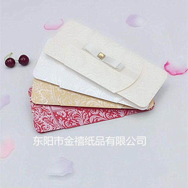 • 金禧纸品厂家直销。主要生产各种中高档请柬、邀请函、红包、结婚请柬、礼簿等国内外纸类产品,也可以根据客户要求、来样定做。本厂的产品质量保证,价格合理。欢迎国内外新老客户光临。