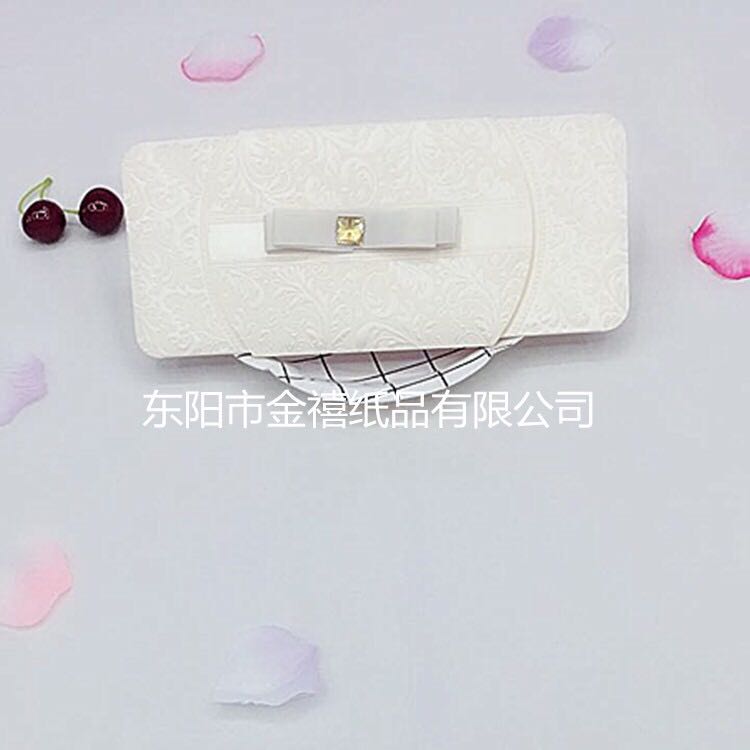 创意刻花精美蝴蝶结优质镶钻结婚请柬/宴会邀请函定制批发
