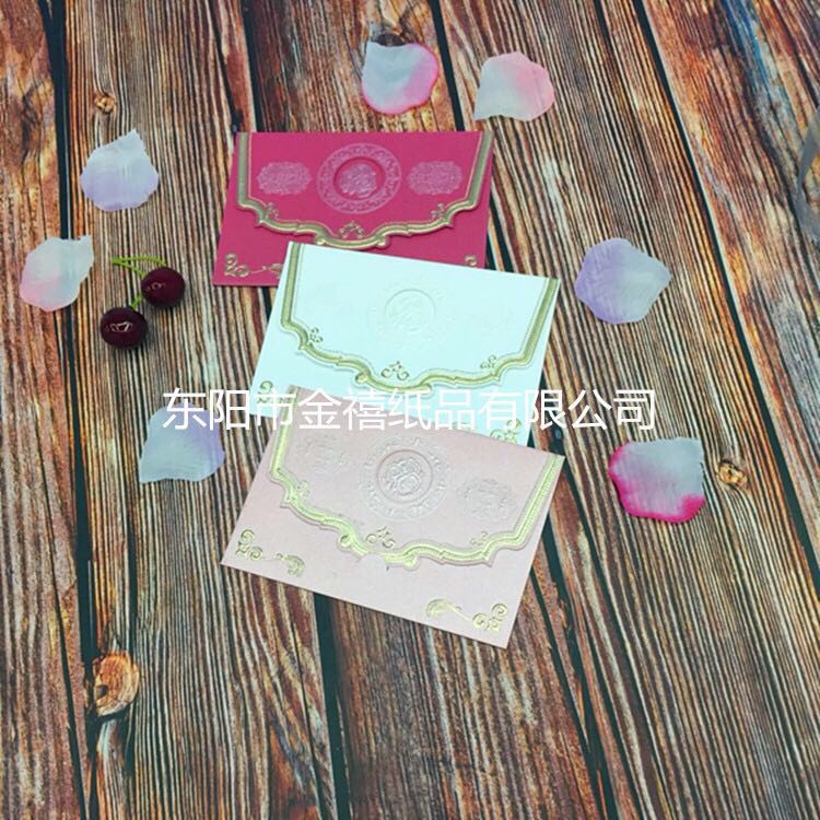 • 金禧纸品厂家直销。主要生产各种中高档请柬、邀请函、红包、结婚请柬、礼簿等国内外纸类产品,也可以根据客户要求、来样定做。本厂的产品质量保证,价格合理。欢迎国内外新老客户光临。