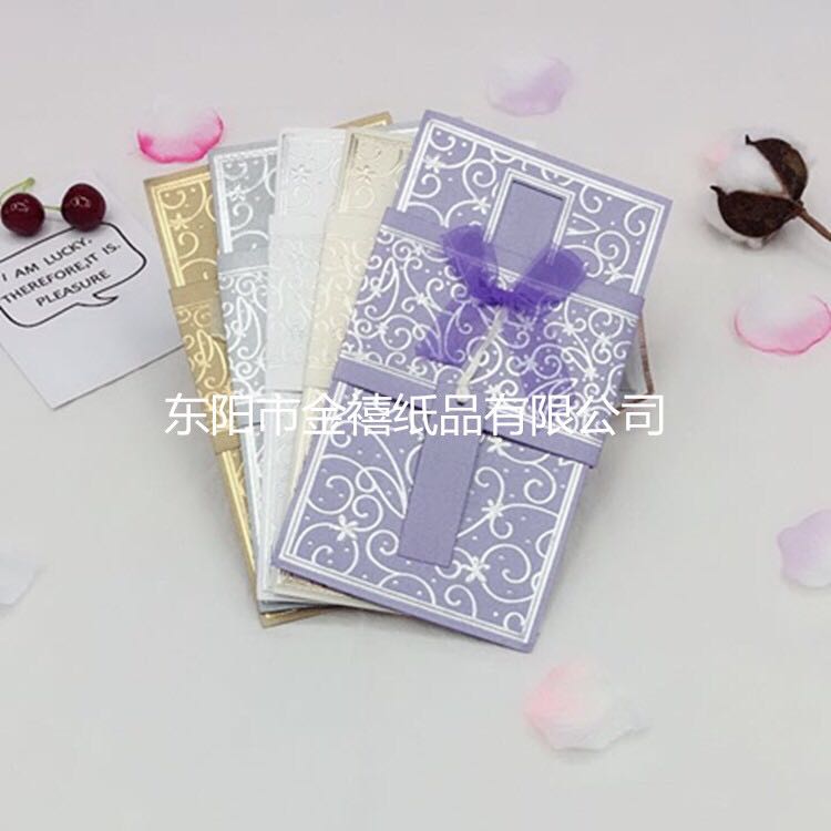 创意丝带蝴蝶结长款结婚请柬/宴会邀请函厂家直销定制批发