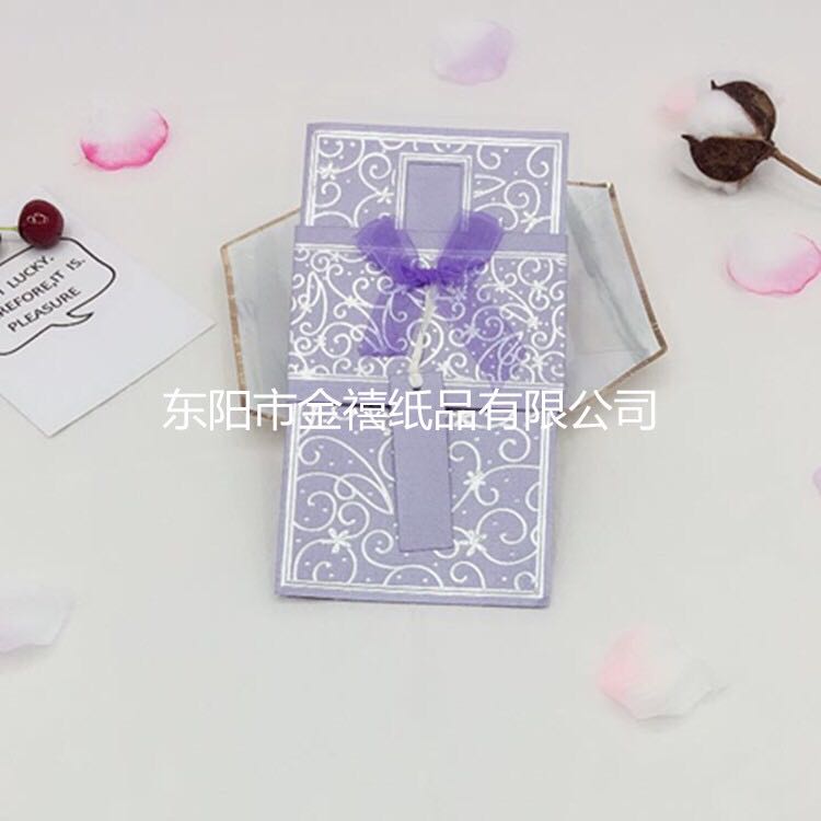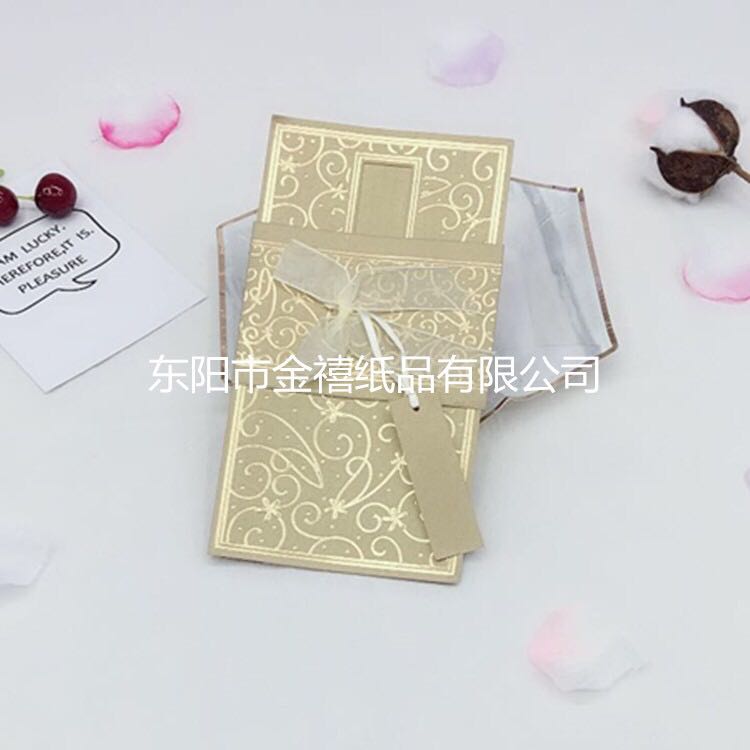 • 金禧纸品厂家直销。主要生产各种中高档请柬、邀请函、红包、结婚请柬、礼簿等国内外纸类产品,也可以根据客户要求、来样定做。本厂的产品质量保证,价格合理。欢迎国内外新老客户光临。