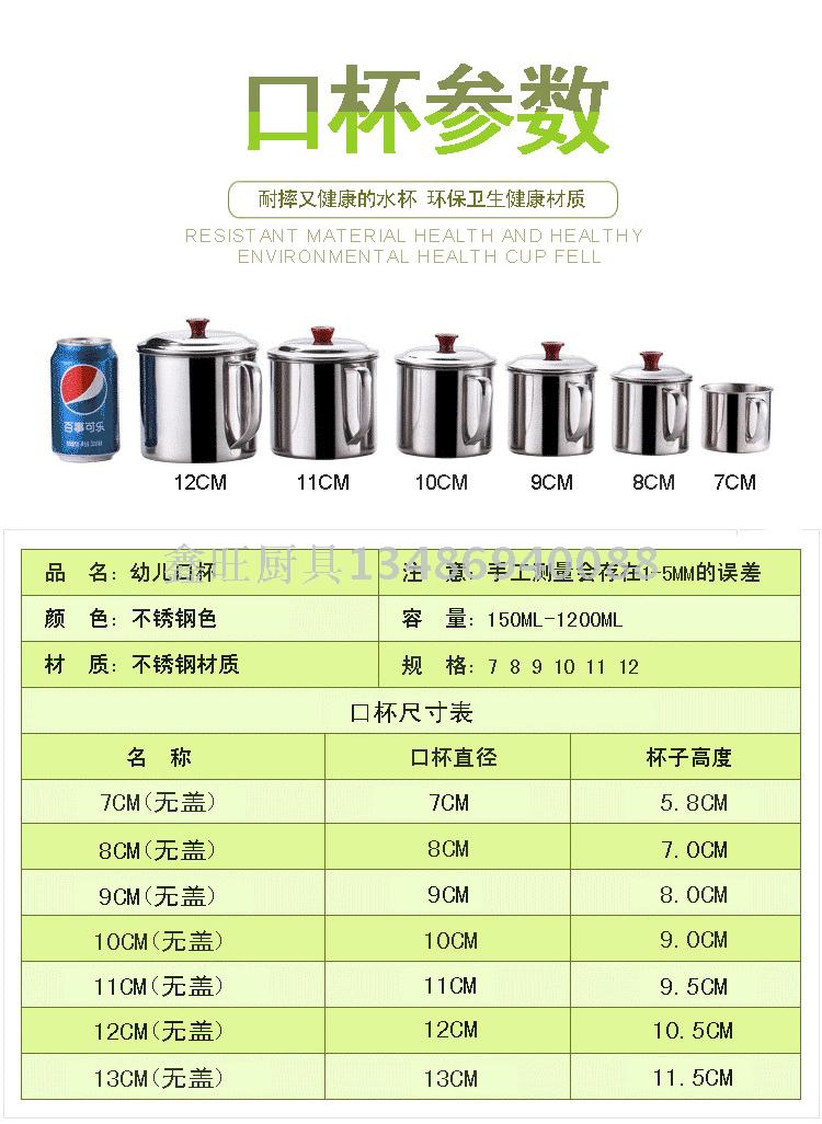 加厚不锈钢口杯带盖手柄 办公室茶杯学生幼儿园儿童水杯漱口杯 投诉