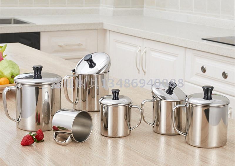 加厚不锈钢口杯带盖手柄 办公室茶杯学生幼儿园儿童水杯漱口杯