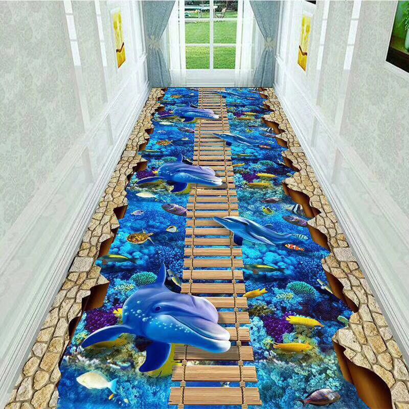 海豚3D印花地毯,过道地毯60厘米宽*1米长,