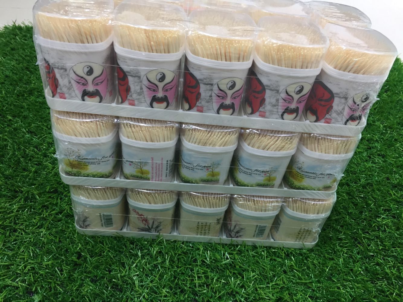 丙弧型多款图案小桶装牙签牙签瓶装水果牙签高级竹牙签双头400只