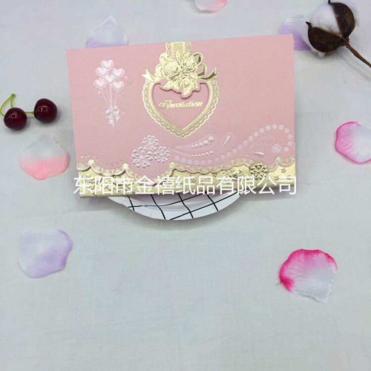 优美印花精致烫金甜蜜桃心结婚请柬/宴会邀请函厂家直销定制批发