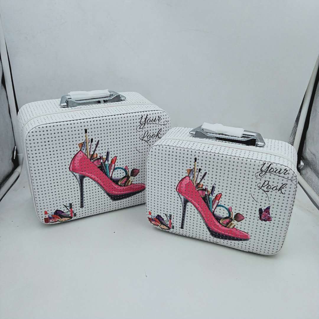 本店所有产品规格均为手工测量,会有一公分的误差哦!高档便携式手提多功能收纳化妆包!韩版甜美印花两件套大容量收纳包!
