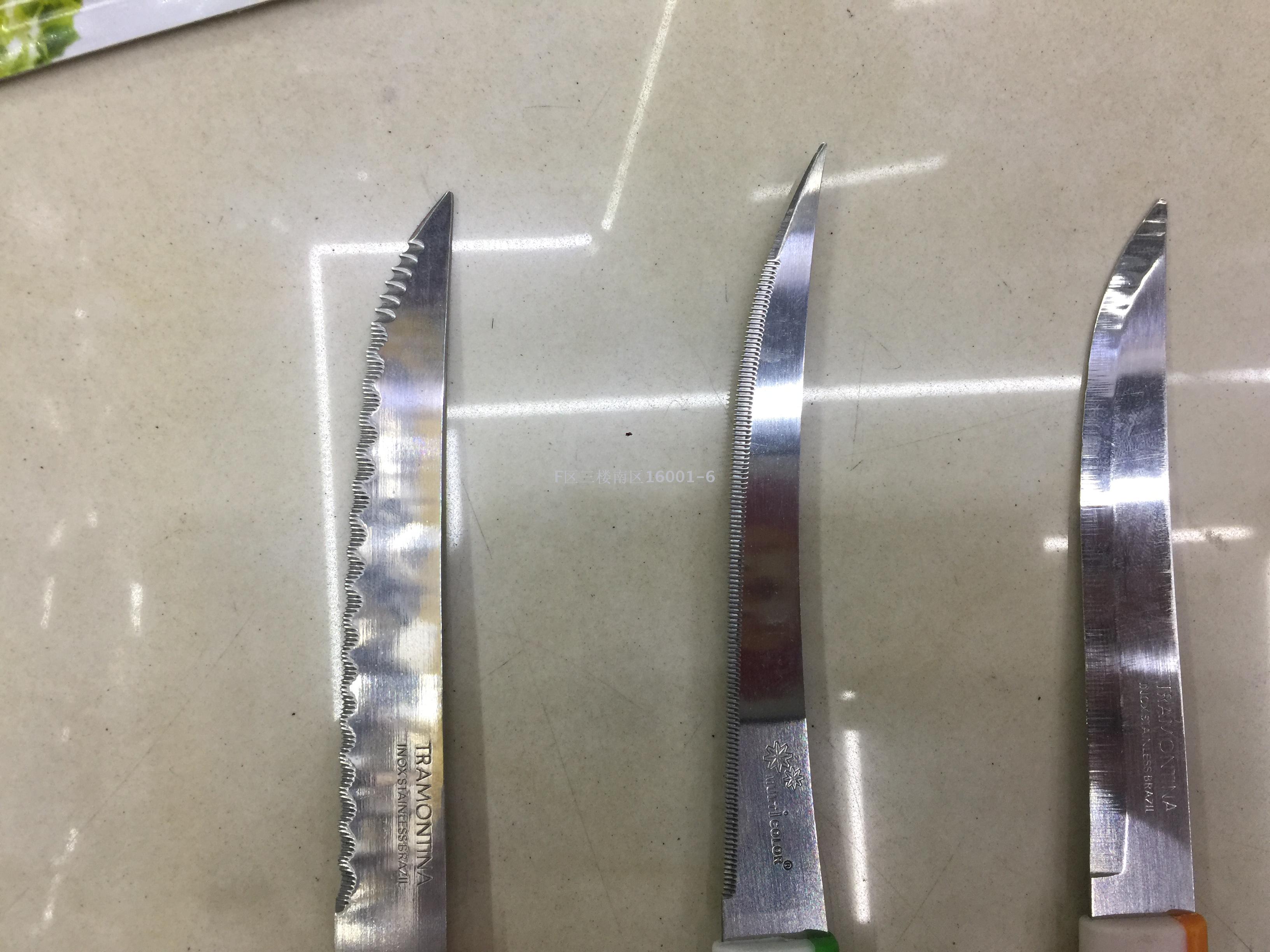 MULTICOLOR 12PCS吸卡牛排刀三色混装好质量利口粗牙细牙KG03 投诉