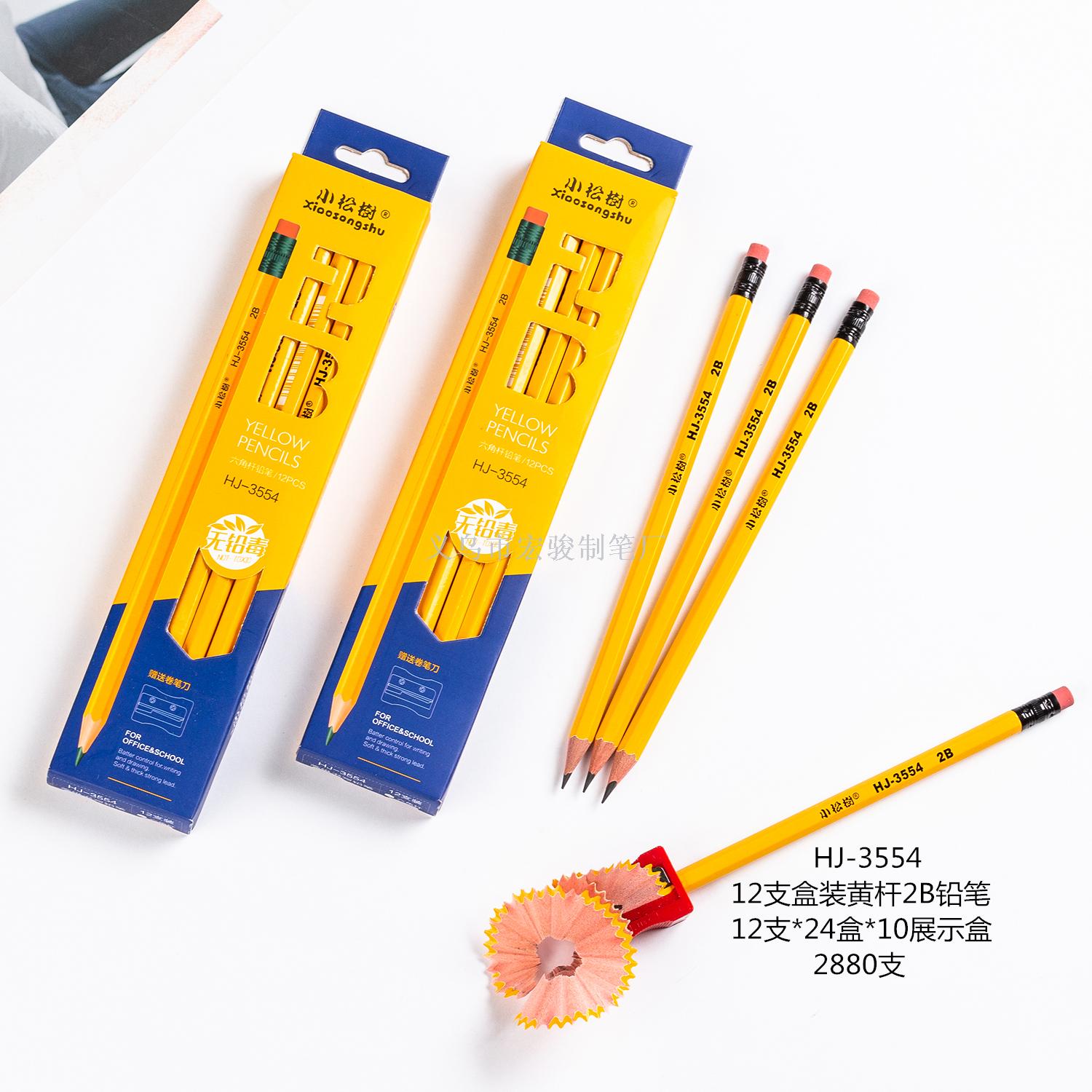 品名:小松树12支盒装黄杆2B皮头铅笔