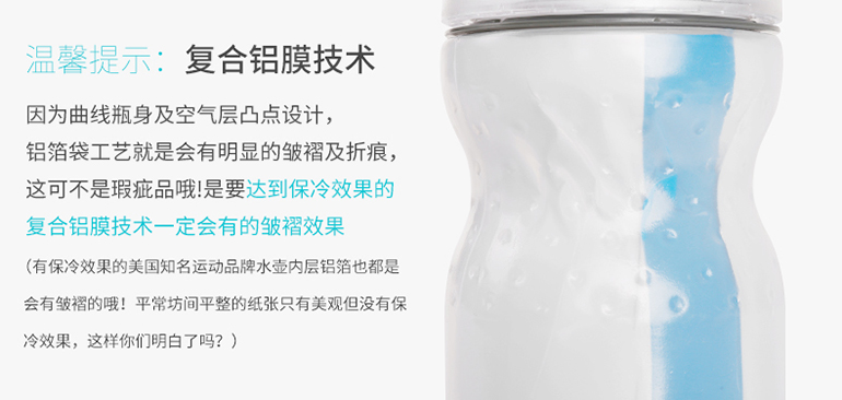 产品材质:盖子ABS/按键pp/吸嘴TPR/提手PE/ 壶身PE+铝箔袋
