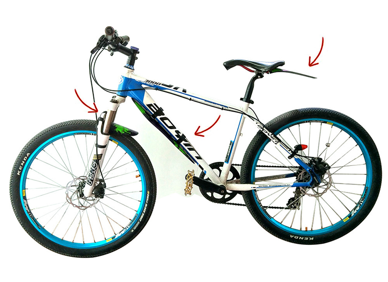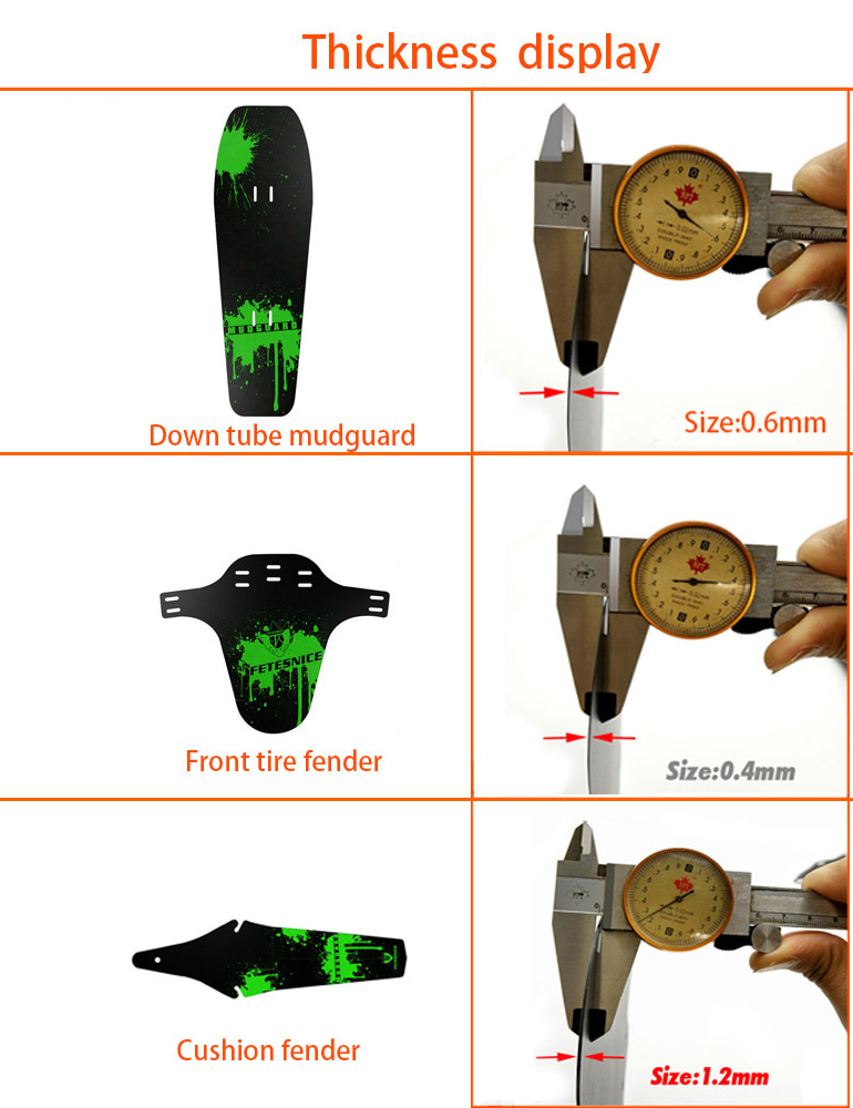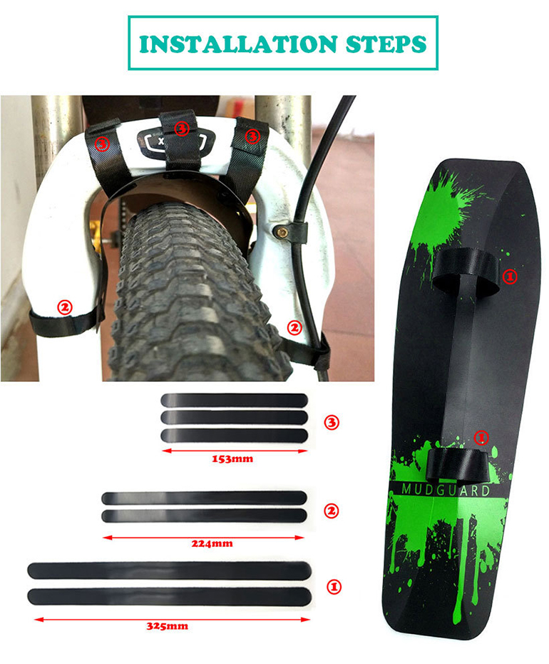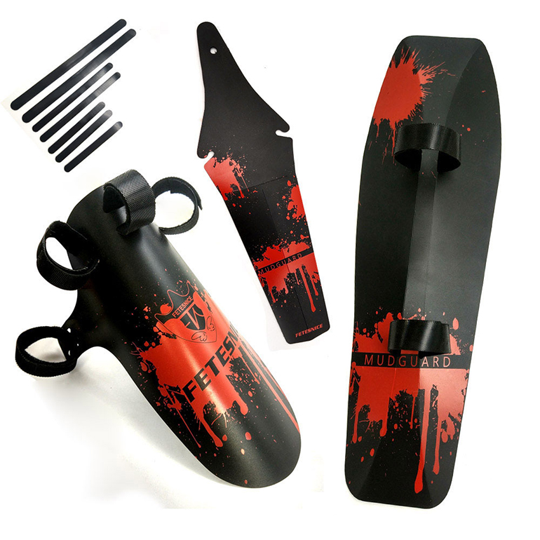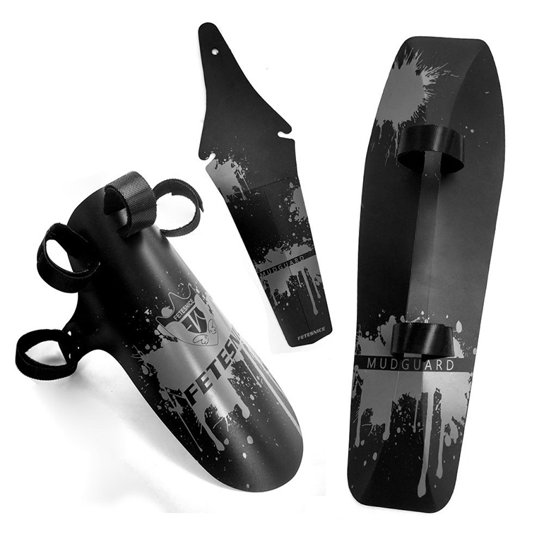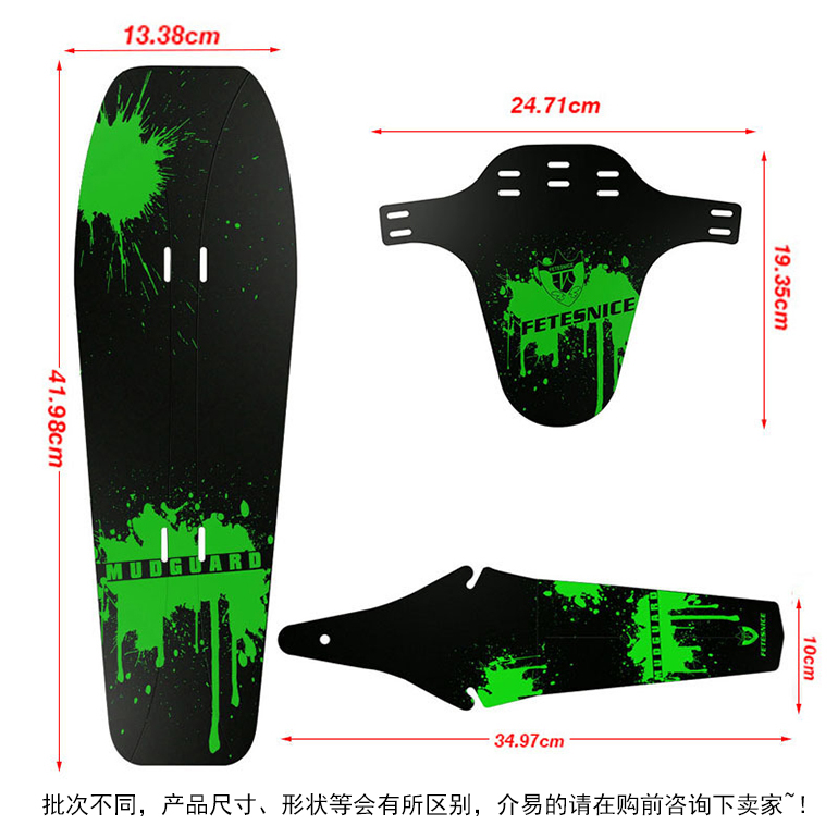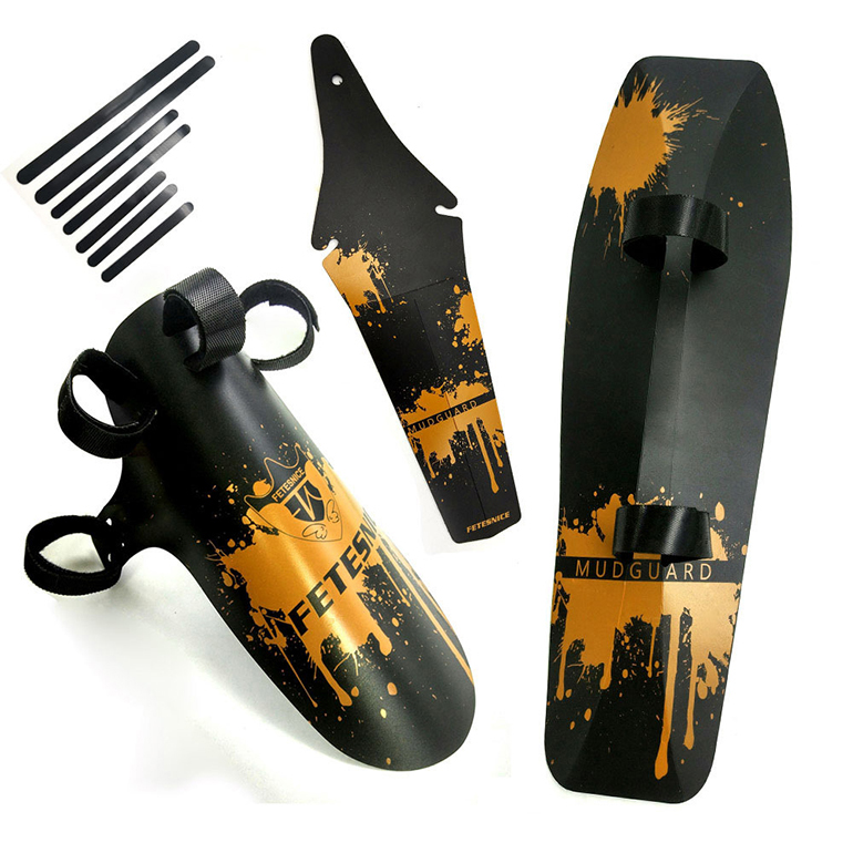 产品包括:前叉挡泥板一片,车架下管挡泥板一片,鞍座挡泥板一片,尼龙魔术贴7条。