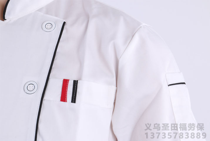 领口细节:时尚领口设计,黑色边线点缀,英俊帅气,领子挺而不硬,方便穿着。