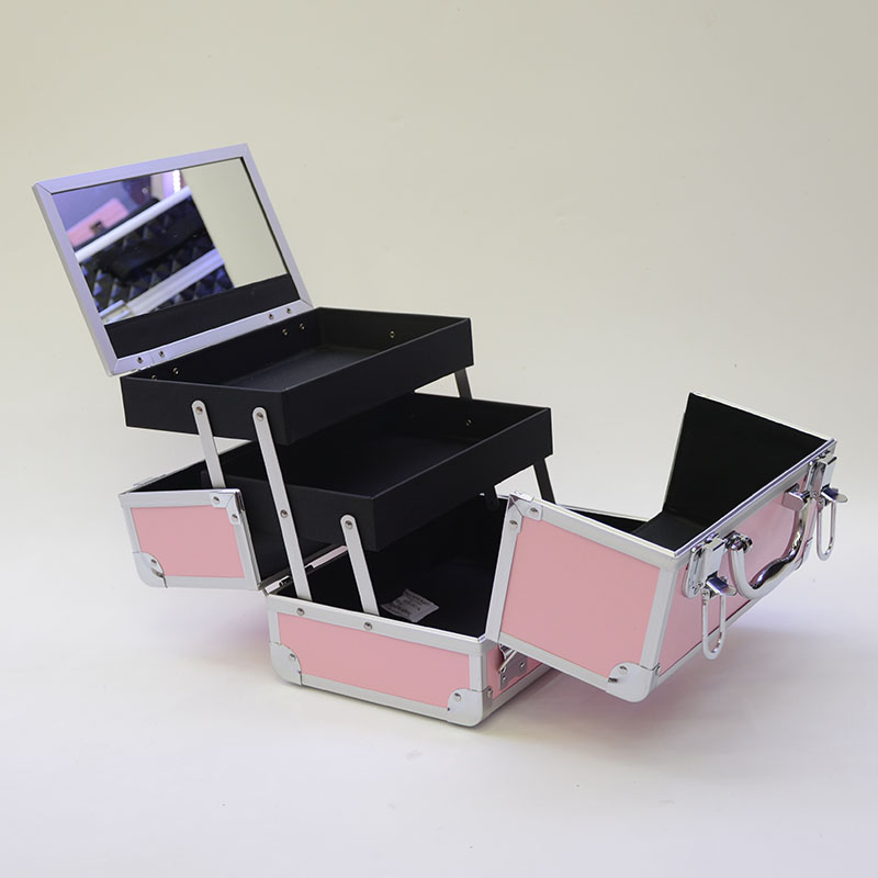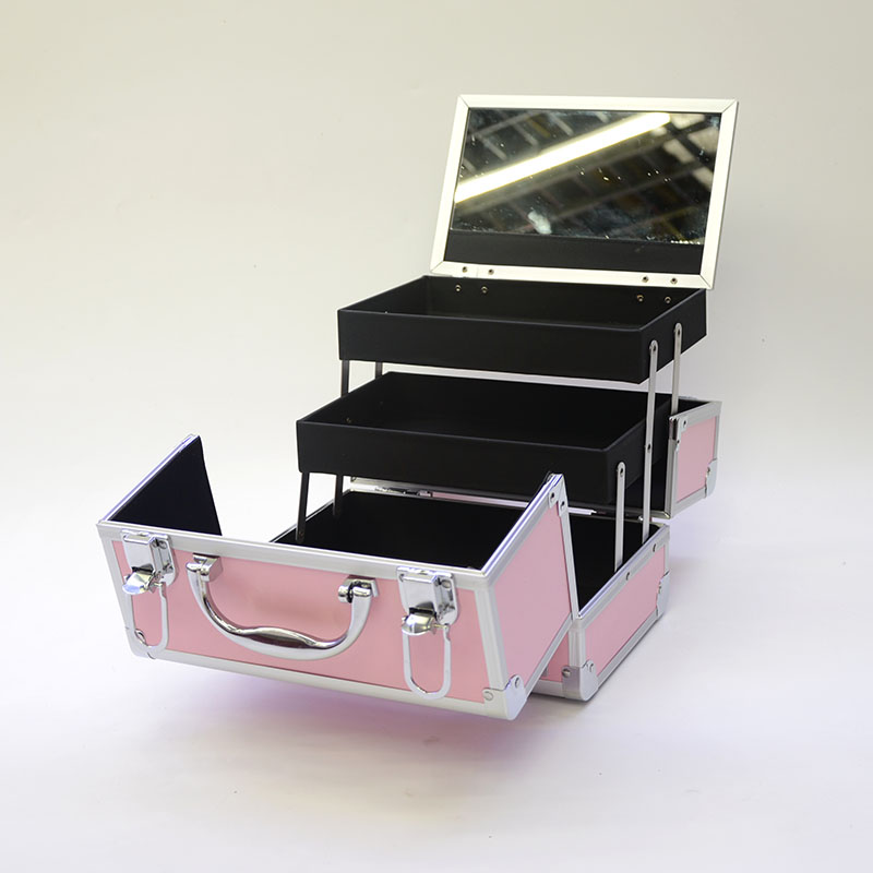 本店所有产品规格均为手工测量,会有一公分的误差哦!玫红色甜美菱格手提化妆箱,高档铝材双开收纳箱!便携式多功能跟妆箱!美容美甲纹绣箱!