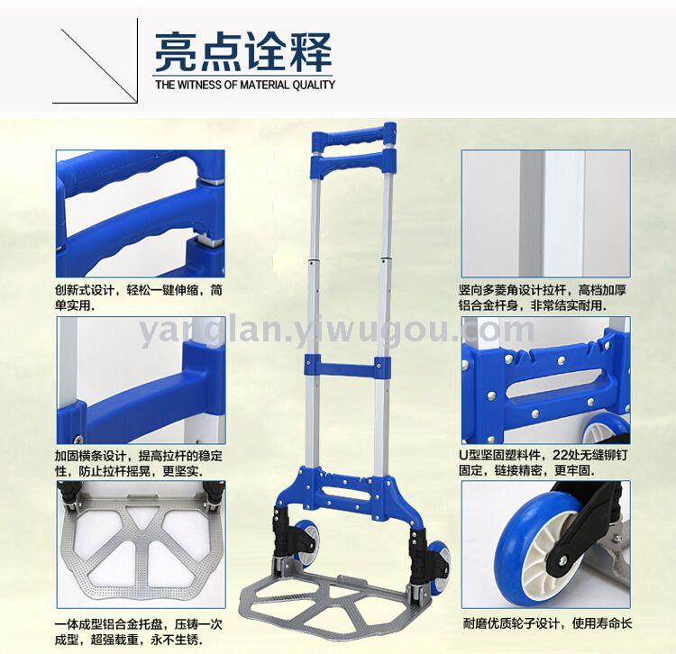 【产品说明】:独有的滚轮可折叠设计,节省空间,铝质底盘,承载性强,省力方便,时尚美观,非常适用于机场、商场、仓管等各种场所,是你旅游、购物、搬运的必备工具。