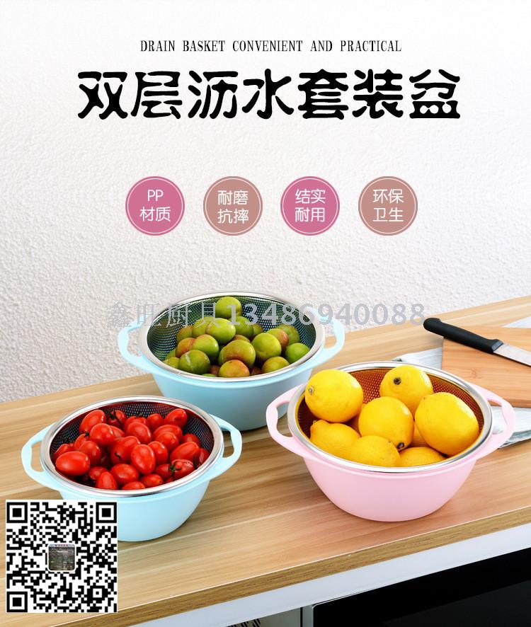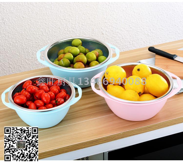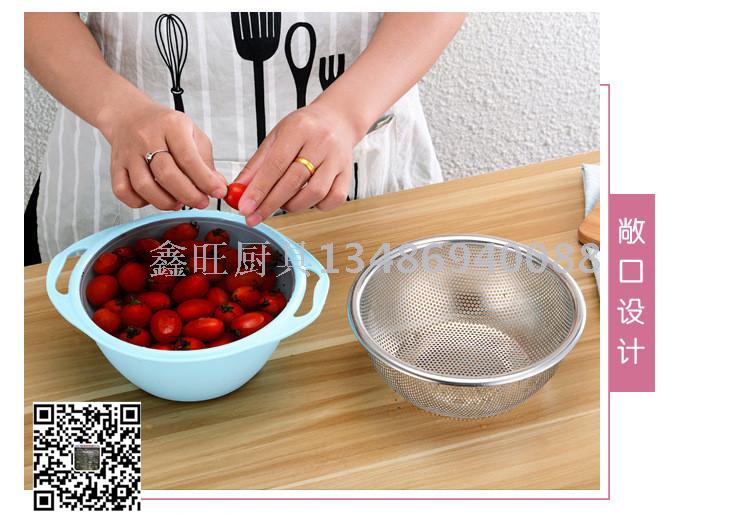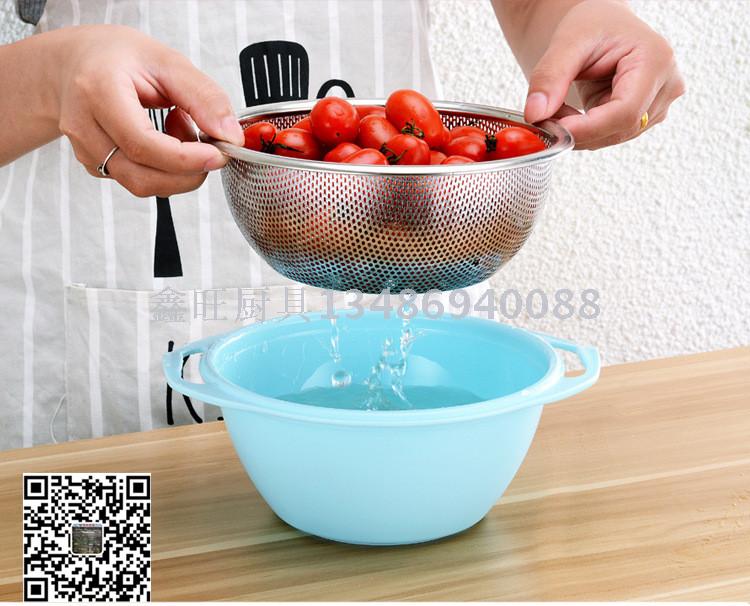 不锈钢沥水盆套装 淘米盆双层加厚水果篮洗米筛淘米器漏盆