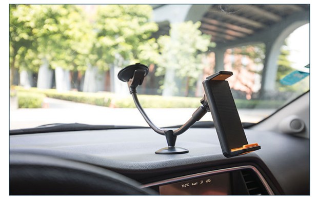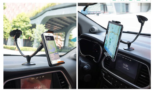 中控仪表台硅胶吸盘通用360°旋转新款汽车载手机支架 二合一《加长版支架带托盘》