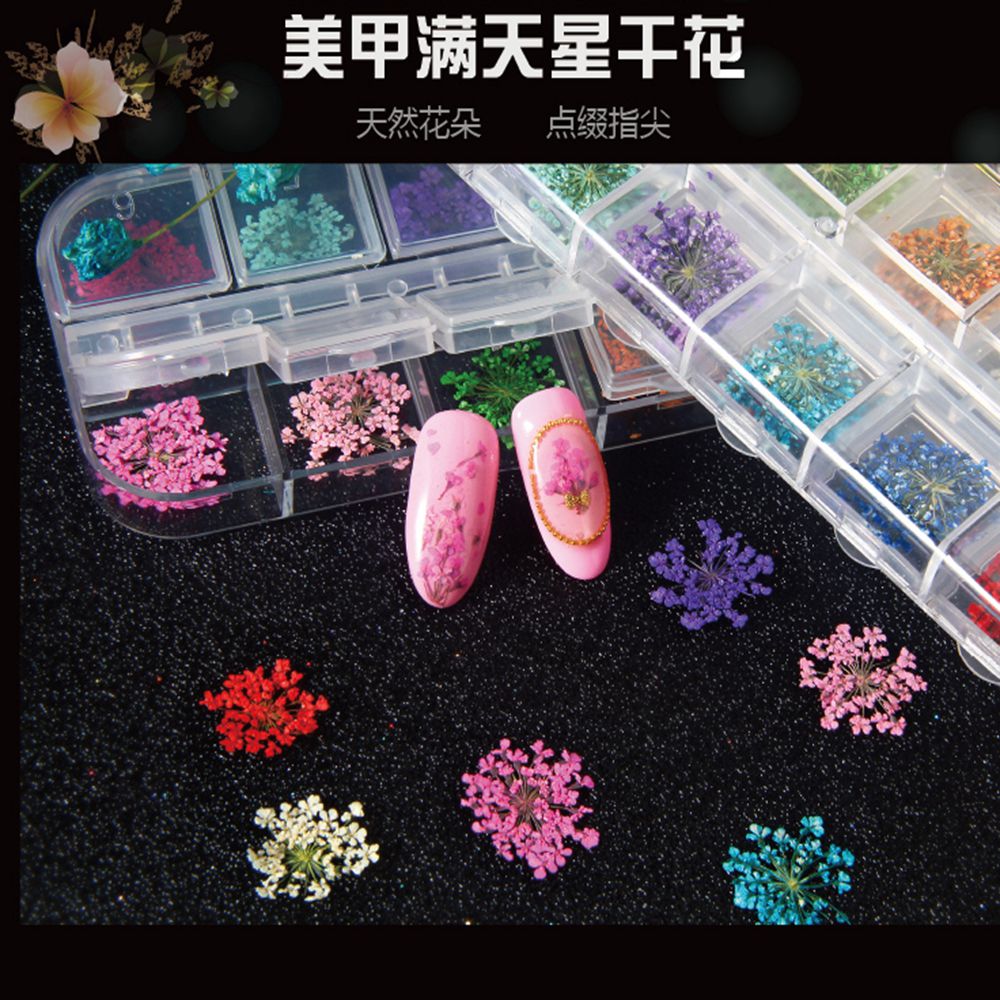 【产品用途】:点缀装饰水晶甲等人造指甲非常漂亮,因为整片干花很大,可以在做指甲之前把大朵上的小花剪下来使用,还可以和闪粉、亮钻等装饰品搭配使用,非常美丽,显得很高贵哦!