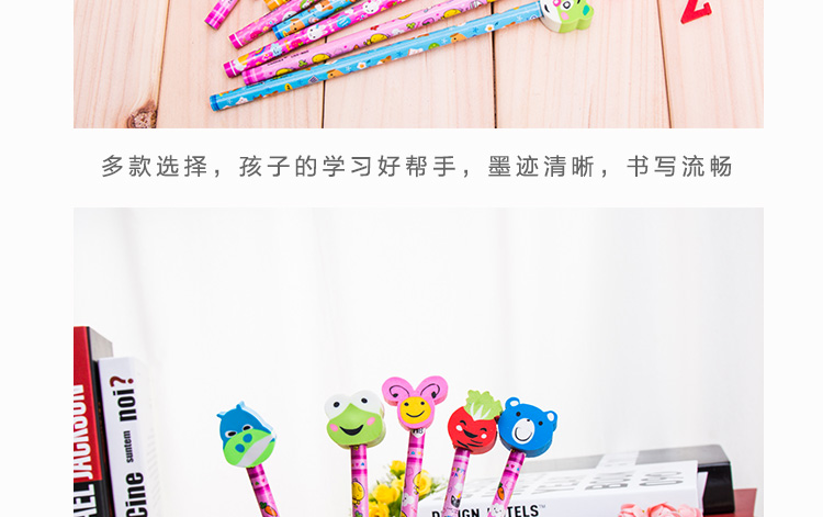 HB铅笔 儿童学习用品 小学生奖品 创意可爱卡通带橡皮擦文具
