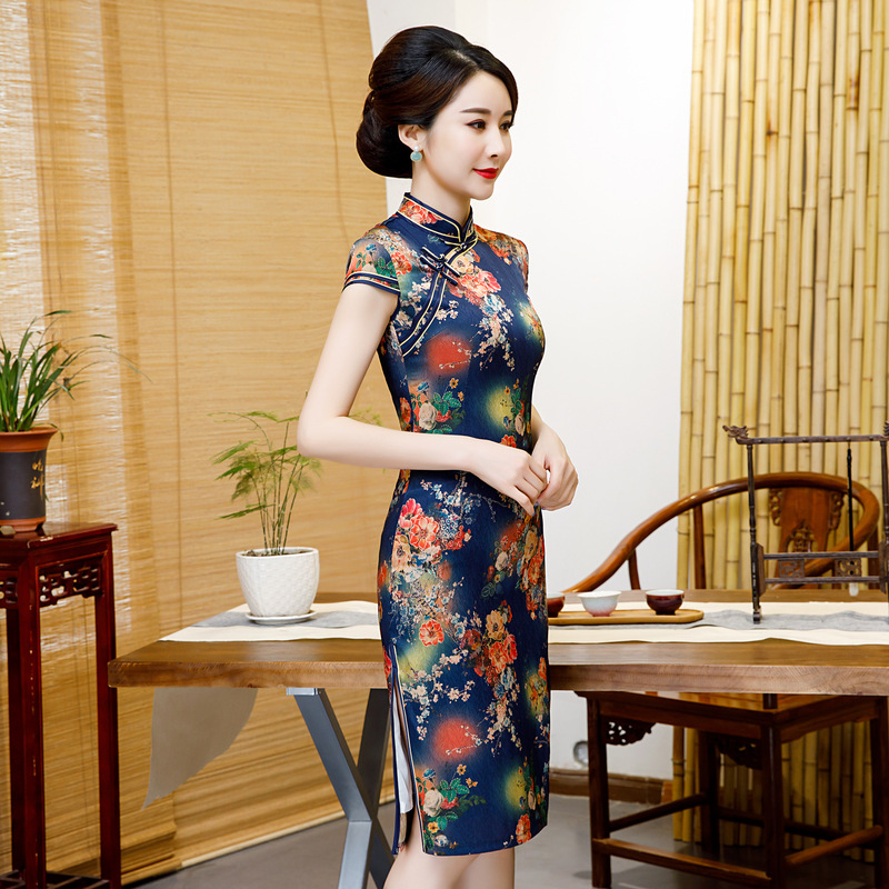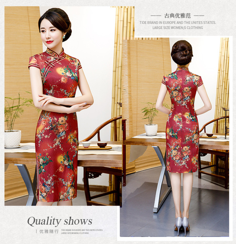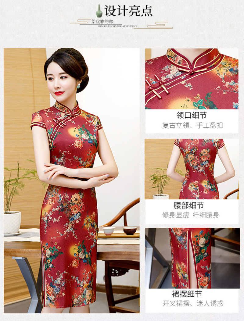 2028春季新款旗袍双层中长裙中国风香云纱气质旗袍女装连衣裙