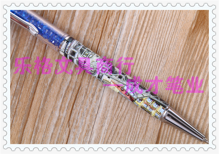 产品名称:浪漫法兰西图案装饰书写圆珠笔 多色广告赠品原子笔 创意旋动