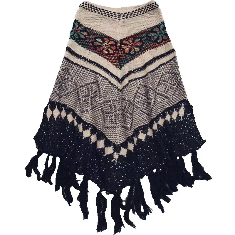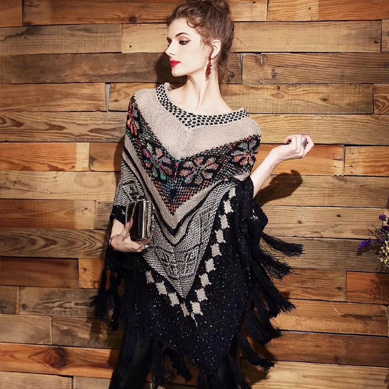 秋冬装中长款蝙蝠袖流苏斗篷披肩 V领套头加厚绣花毛衣针织衫 English | 投诉