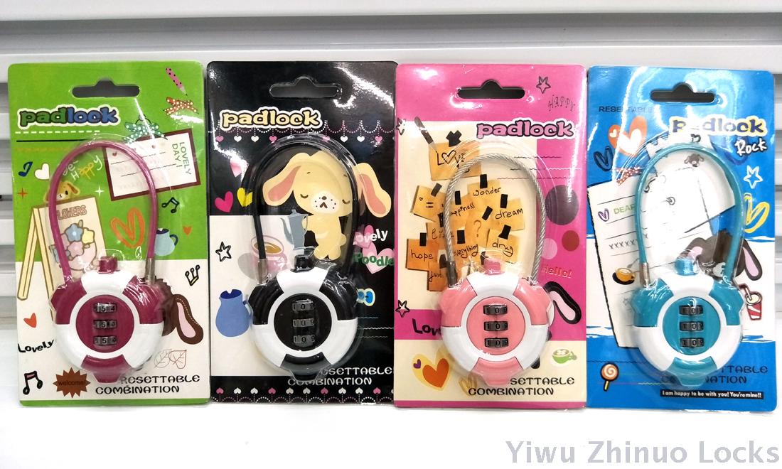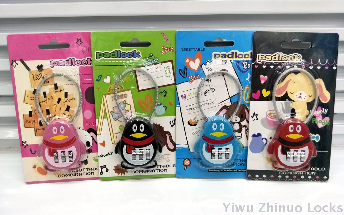 厂家直销 学生文具锁 带钢丝卡通箱包密码锁 韩版迷你箱包小锁