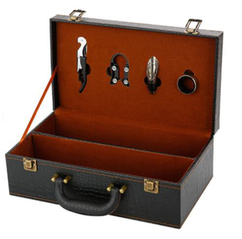 【品名】双扣鳄鱼纹红酒双支皮盒