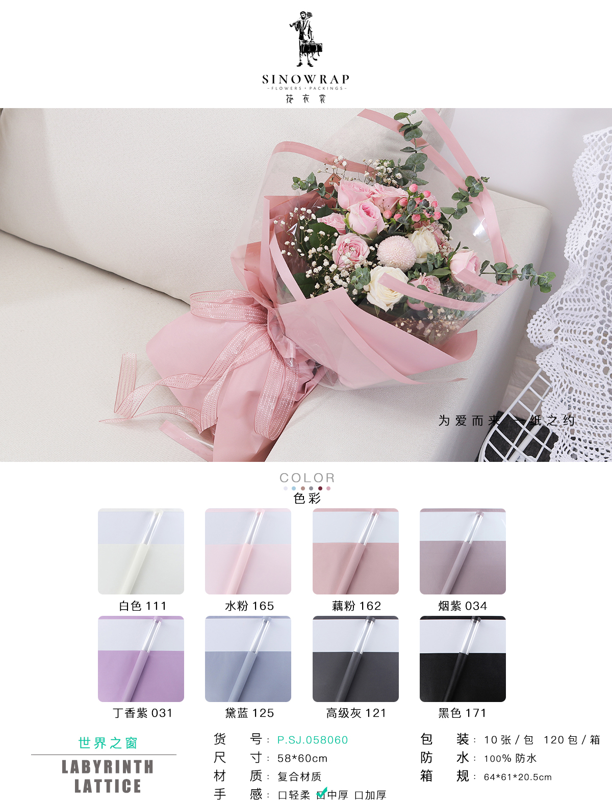 • 花衣裳品牌鲜花包装纸厂家直销 &价格合理专业生产批发鲜花包装纸,韩素纸,雾面纸,欧雅纸,彩带,欢迎来店59号门5街1楼H1-22342店面。客服微信:13750961181