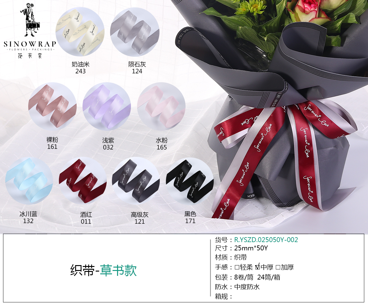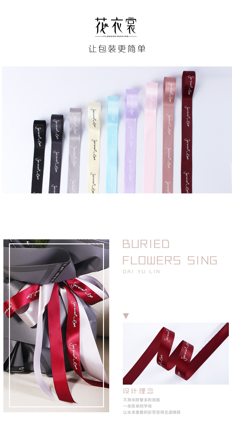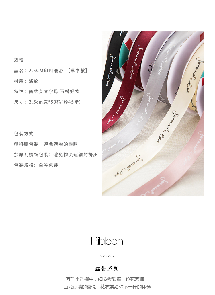 2.5cm英文丝带缎带 YWZD-002 鲜花花束包装织带DIY手工材料2.5cm 投诉