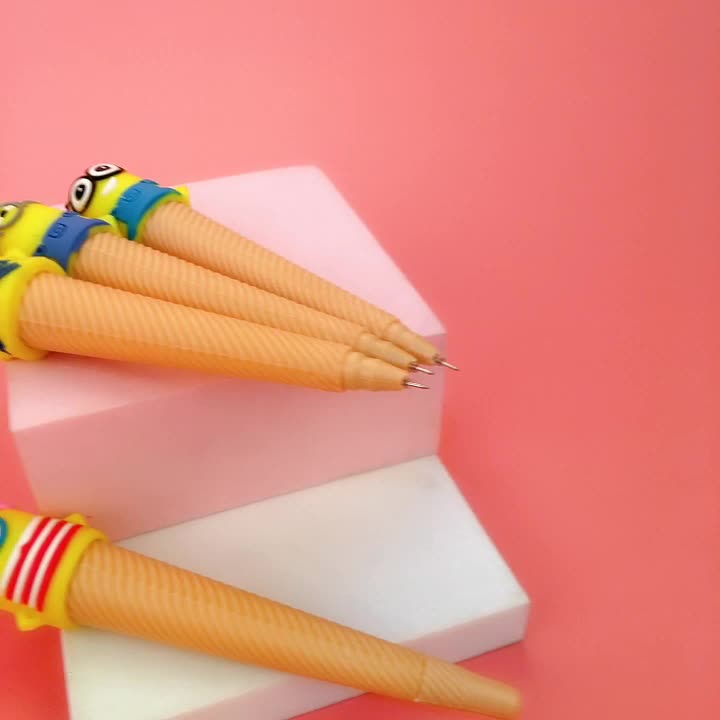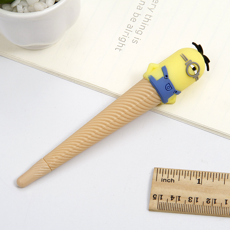 卡通创意 可爱小黄人冰淇淋中性笔 单双眼小黄人甜筒黑色水笔文具