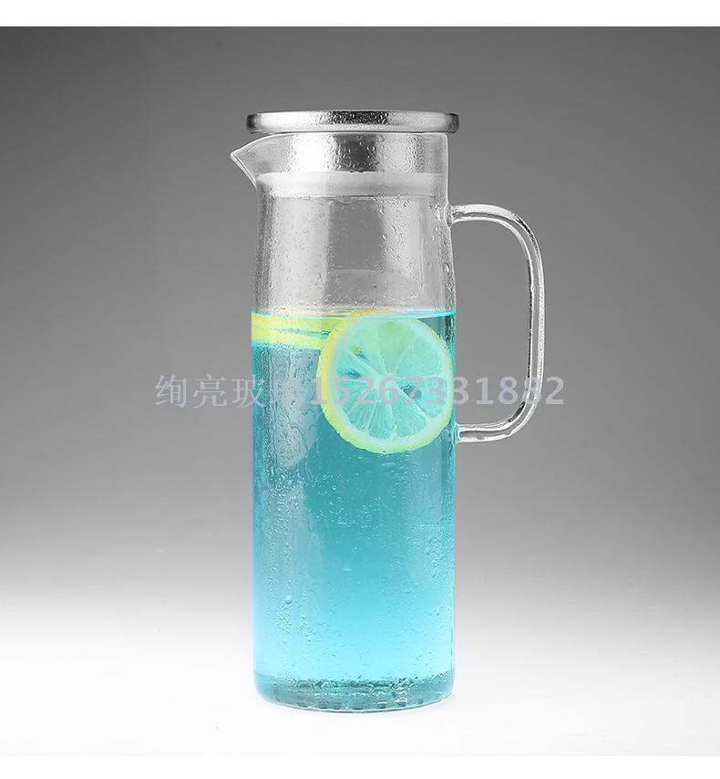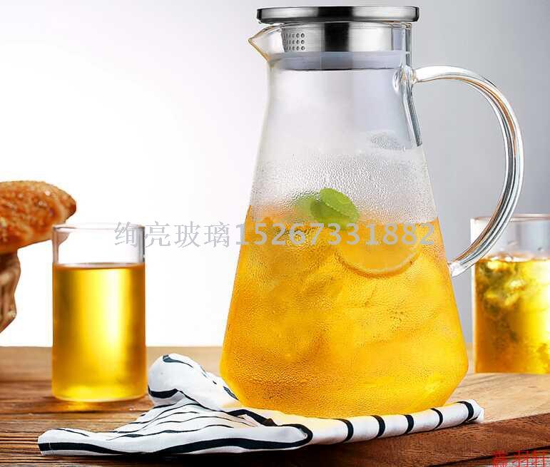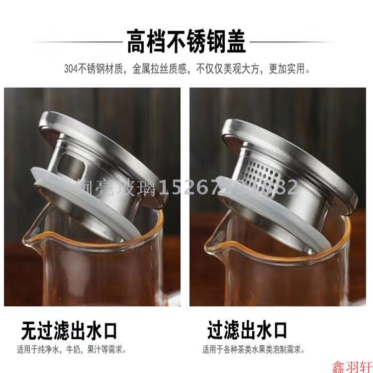 高硼硅清水壶 大容量冷水壶 耐热防爆花茶壶不锈钢盖