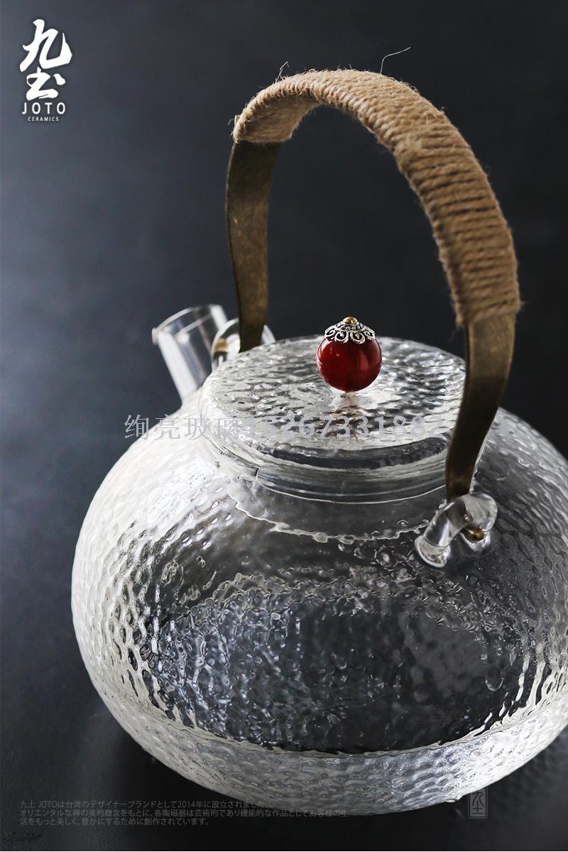 高硼硅铜把壶煮茶器 高档短嘴壶泡茶壶 耐热玻璃提梁壶