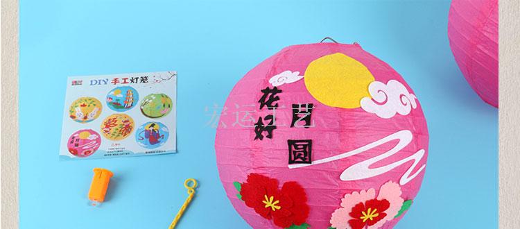 品名:儿童手工灯笼 款式:6个款式,360一件 尺寸:直径20厘米 材质:纸灯笼+不织布 采用上等不织布,安全,环保,无异味