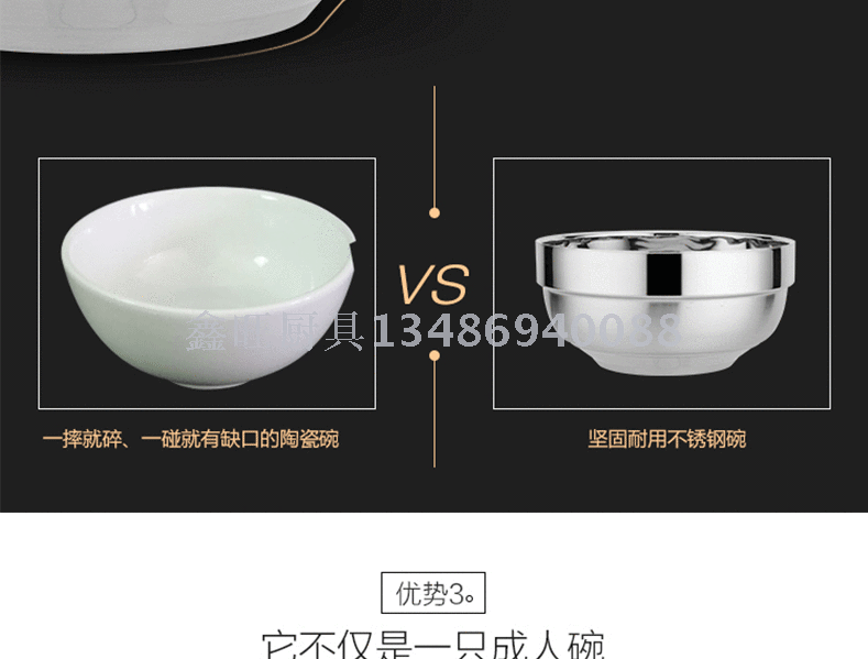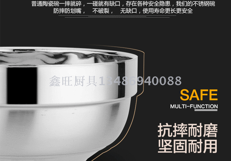 不锈钢碗家用食堂防烫碗双层儿童隔热碗不锈钢饭碗汤面碗汤盆 投诉