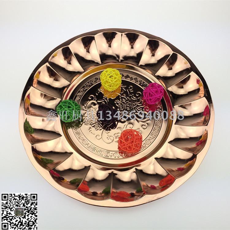 不锈钢百合盘 加厚出口圆形托盘金色压花越式阿拉伯莲花盘 投诉