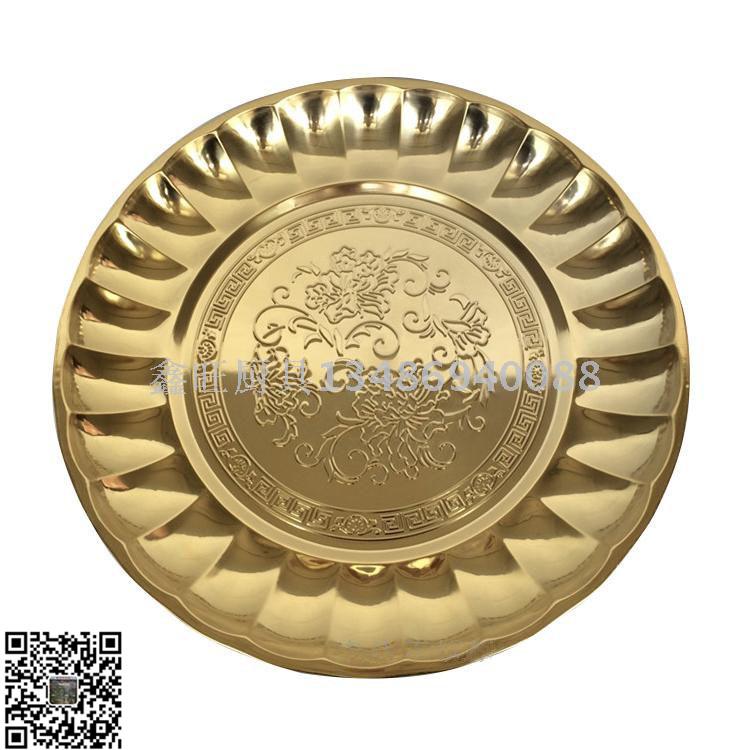不锈钢百合盘 加厚出口圆形托盘金色压花越式阿拉伯莲花盘