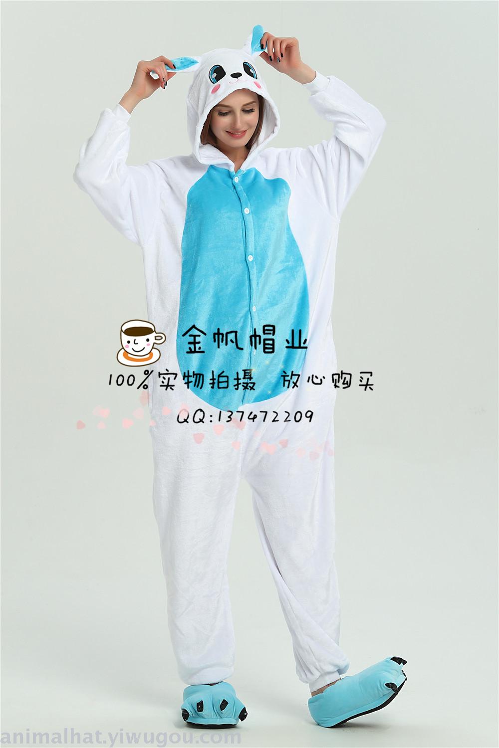 冬季动物连体睡衣蓝色兔子卡通法兰绒成人儿童家居服如厕连体衣 投诉
