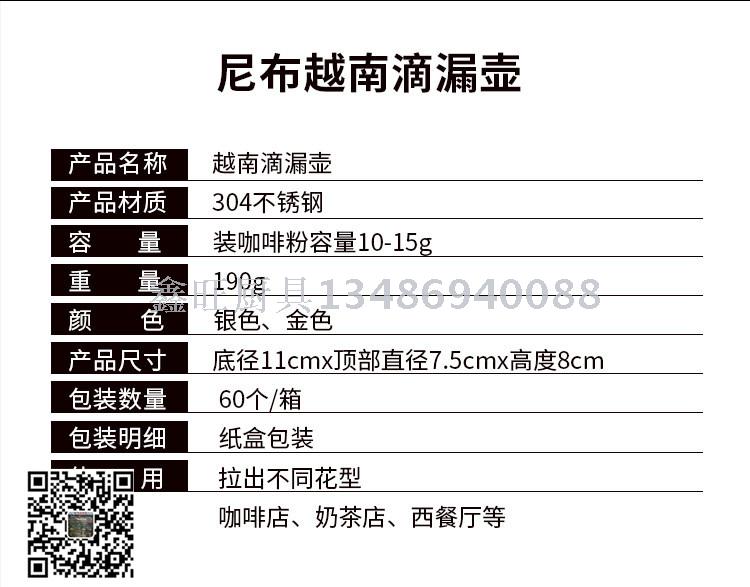 加厚越南滴漏壶304不锈钢家用冲泡手磨咖啡壶 越南壶镀金色 投诉