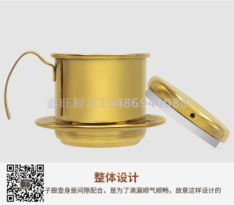 加厚越南滴漏壶304不锈钢家用冲泡手磨咖啡壶 越南壶镀金色
