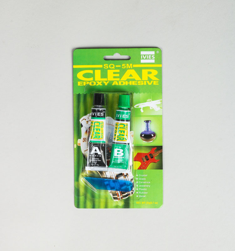 被粘接表面不必严格处理,只用砂纸打磨而无需脱脂,按目测的1:1比例混合后粘结或二面分别涂布或单面重叠涂布后粘结,常温下指压3-8分钟固化定位,30-60分钟达到最终强度,24小时后达到最高强度。