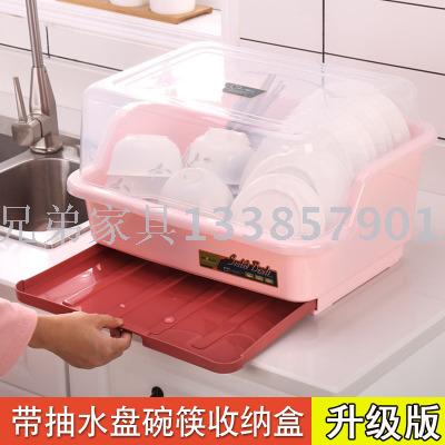 餐具沥水碗架带盖厨房多功能碗碟架塑料双层碗筷收纳盒