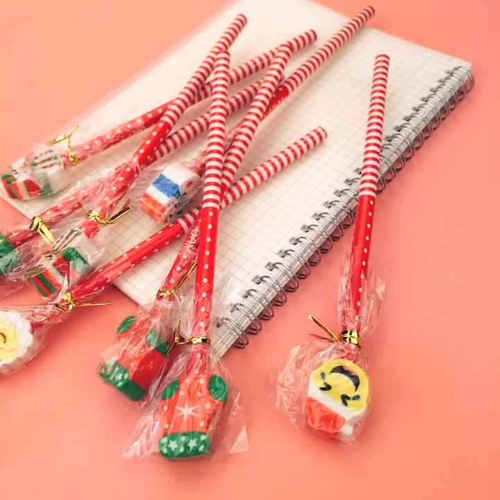 卡通圣诞 橡皮套铅笔 创意文具 儿童学习用品 圣诞节礼品 奖品 赠品