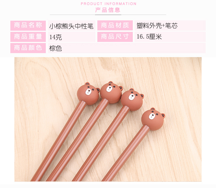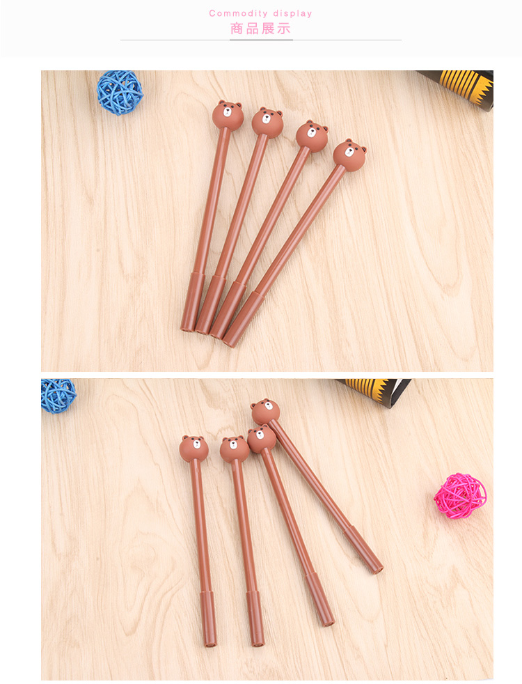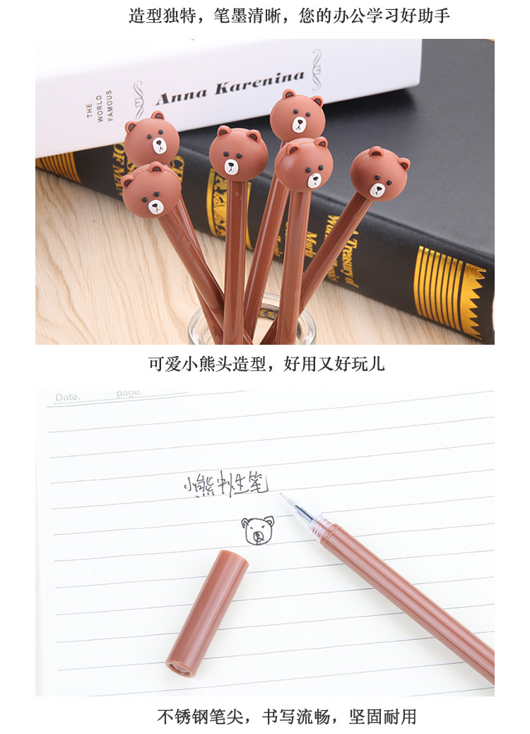 可爱小熊中性笔 创意学习文具学生用品0.5mm黑色针管水性笔批发